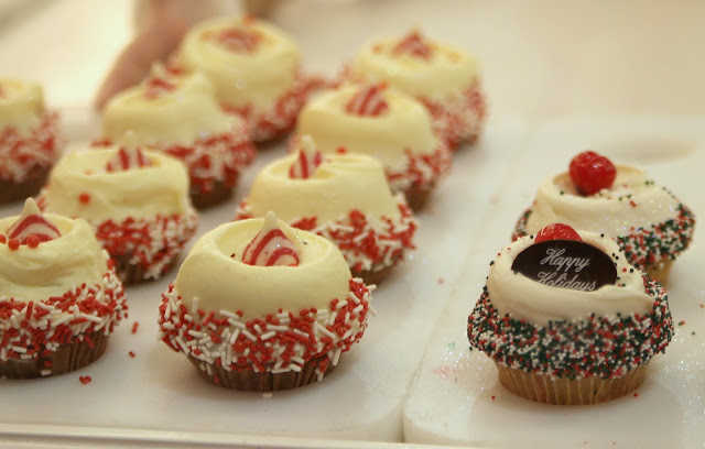 They also did not have the fake snow (tiny bubbles) they would blow every fifteen minutes. This was a major bummer for the girls, they really look forward to this part. We decided to walk around the hotel and enjoy the lights and hope for the best. Of course the lights did not dissapoint and the girls knew that after we walked around the hotel we would stop at Caseys Cupcakes for dessert.